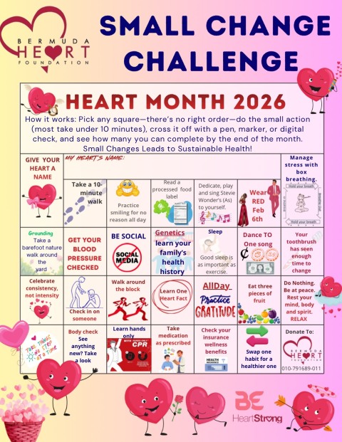 This February for Heart Month, the Bermuda Heart Foundation invites you to join the Small Change Challenge, a simple, supportive, and realistic way to build heart-healthy habits. Each day offers a small, heart-healthy prompt—movement, reflection, awareness, or rest—that fits into real life. Participating is easy: