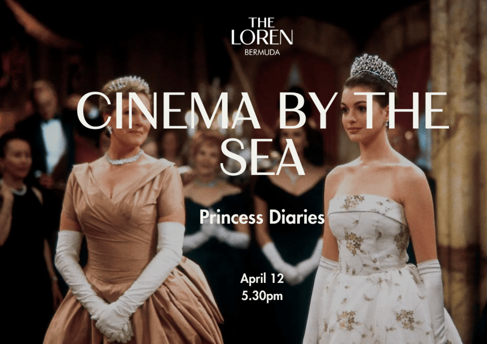 Settle in for a relaxed evening under the stars at Cinema by the Sea on April 12, 2026, featuring a seaside screening of Princess Diaries at Maree Lounge & Bar. Enjoy classic theater snacks and complimentary popcorn, with additional drinks and culinary delights available for purchase from 5:30pm to 6:00pm. The movie begins at 6:00pm, making it the perfect casual night out by the ocean. Tickets are $35 and include a selection of movie snacks plus complimentary popcorn. Gather your friends, kick back under the stars, and reserve now for a fun evening by the sea.