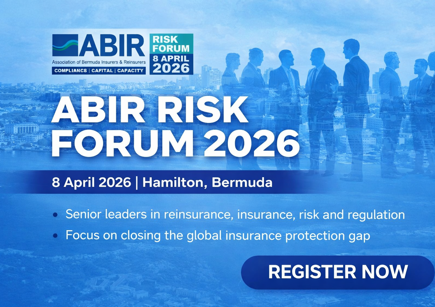 The ABIR Risk Forum 2026 will take place on April 8, 2026 in Hamilton, Bermuda, bringing together senior leaders from across the global reinsurance, insurance, risk, and regulatory sectors. Organized by the Association of Bermuda Insurers & Reinsurers (ABIR), this industry forum focuses on key issues shaping the future of the insurance market, including compliance, capital, capacity, and the growing global insurance protection gap. The event provides a platform for thought leadership, industry discussion, and networking among executives, policymakers, and professionals involved in risk and insurance. Attendees will gain insight into current regulatory trends, market dynamics, and strategies aimed at strengthening the resilience and accessibility of global insurance systems.